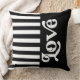 Smart svart och vitt rand halvvägs över kudden för att få en modern chic, titta efter din dekoraccent (på ena sidan) med roligt och kurvretro stil ord "Kärlek". Underbar för ett nylott hem, pianorum eller spelar ingen roll verk åt dig!