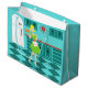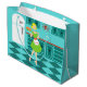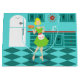 Med den här Retro Kitchen-gift-påsen kan du få din paj och äta den också. Denna kitschi, minimalistiska konst teckning har en hemmafru i perfekten 1950, i sitt moderna köks mitt i århundradet. Den vackra bagaren bär en blomma, en grönt klänning och en vit apron med röda detaljer. Inte ett hår på hennes blonda huvud är ute ur ställe. Å ena sidan håller hon frukten av sitt arbete - en underbar, lattiskfull frukt, paj. En titt och du vet att hennes fräcka paj-kräftor är näst efter ingen. Hon står på ett vattentät och tealschaktbord golv, som utan tvivel är tillräckligt rent för att äta av. Mot en vattenvägg ser vi tealkabinetri med rött trimarbete, rött kontrastmedel, rött låda och svart starstaccent. En röd startklocka hänger på väggen. Vid sidan om finns det ett tillstånd av den senaste tekniken, vit kylskåp med silver handtag. Kylen var i alla fall i toppklass 1950-talet. Det är bara en ren dröm! Oavsett om du är Suzie Homemaker eller bara har en tillhörighet till all sak vintage, är du säker på att du kommer till kärlek den här smutsiga delen av Amerika.