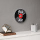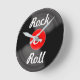 En retro-stil röd 45-post dekorerar den här Sten & rullklockan. Den här skivan är en underbar dekorplagg för ett kök, en källare, ett garage, en reflektor, 1950:s tema, vintage decor osv.. Designen kommer från originalteckningen.