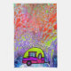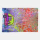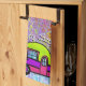 Mång- kulör bakgrund med en färgrik campare och ordstävet "lycklig campare" smyckar denna handduk
