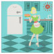 Med den här Retro Kitchen Fabric kan du ha paj och äta den också. Denna kitschi, minimalistiska konst teckning har en hemmafru i perfekten 1950, i sitt moderna köks mitt i århundradet. Den vackra bagaren bär en blomma, en grönt klänning och en vit apron med röda detaljer. Inte ett hår på hennes blonda huvud är ute ur ställe. Å ena sidan håller hon frukten av sitt arbete - en underbar, lattiskfull frukt, paj. En titt och du vet att hennes fräcka paj-kräftor är näst efter ingen. Hon står på ett vattentät och tealschaktbord golv, som utan tvivel är tillräckligt rent för att äta av. Mot en vattenvägg ser vi tealkabinetri med rött trimarbete, rött kontrastmedel, rött låda och svart starstaccent. En röd startklocka hänger på väggen. Vid sidan om finns det ett tillstånd av den senaste tekniken, vit kylskåp med silver handtag. Kylen var i alla fall i toppklass 1950-talet. Det är bara en ren dröm! Oavsett om du är Suzie Homemaker eller bara har en tillhörighet till all sak vintage, är du säker på att du kommer till kärlek den här smutsiga delen av Amerika.