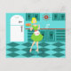 Med denna Retro kökvykort kan du ha din paj och äta den, för. Denna kitschy minimalist konstteckning presenterar en perfekt 50-talhemmafru, i henne modernt kök för det mitt- århundradet. Den härliga bagaren ha på sig en flouncy, gröntklänningen och ett vitförkläde med rött specificera. Inte ett hår på henne det blonda huvudet är ut ur ställe. I en räcka, henne är hållande frukten av henne som är arbets---ett ursnyggt, överträffat galler, fruktpaj. En ögonkast och du ska vet att hon flagiga pajskorpor är understöder till inga. Hon står på ett aqua- och krickaschackbrädegolv, som är otvivelaktigt rent nog att äta av av. Mot en aquavägg ser vi krickacabinetry med aquaklippningarbete, en röd countertop, röda enhetshandtag och svart starburstbrytningar. Ett rött, starburst tar tid på hänger på väggen. Till sidan finns det ett statligt - av - - konsten, vitkylskåp med silverhandtag. Åtminstone var kylen statlig - av - - konsten i 50-tal. Nu är den precis vanligt drömlikt! Huruvida är har du den Suzie homemakeren eller enkelt en frändskap för all sakvintage, dig är säker att älska denna scrumptious skiva av Americana.
