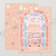 Fira med stil med denna groovy retro-inbjudan till barnkalas som har en färgglad pastellregnbåge, fredstecken, prästkragar och en fantasifull rosa skåpbil. Perfekt för ett 1960-talsinspirerat kalastema, denna roliga och livfulla design sätter tonen för fred, kärlek och firande. Anpassa med ditt barns namn, kalasinformation och RSVP-information för att skapa en unik souvenir. Idealisk för födelsedagar, retrokalas eller någon annan tillställning som kräver en lekfull, nostalgisk stämning.