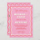 Retro slingrande kurvig vågig rosa röd foto bröllopsinbjudan