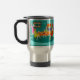Denna Retro kvinna veckokortspeltravel mug presenterar en tecknadteckning av fyra moderna kvinnor för mitt- århundrade på en möhippa. De umgås i en stilfull matsal. På en turkos- och krickategelstenvägg finns det en modern jordklotkonst för mitt- århundrade den sträckta kanvastrycket som är tillgänglig från StrangeLittleOnions det Zazzle lagret. Mitt har de bra smak! Till och med dörrar för glidningsexponeringsglas kan vi se de frodiga gröna lawnsna av förorterna. Över gatan finns det ett slätt orange hus med en rosa- och vitbil som parkeras i carporten. Dra tillbaka i matsalen, tre kvinnor placeras på ett rundabord med en orange tablecloth. Det finns en rödhårig i en gul klänning, en brunett i en grön klänning och en blondin i en röd klänning. De är hållande kort i deras händer. Fyra tekoppar är på bord som väntar precis för att fyllas av den korpsvarta haired värdinnan i en rosa wiggleklänning. Hon bär ett magasin med en teakaraff perched överst av den. Alla av kvinnor har en underbar tid, men de bör antagligen hålla ett öga på blondinen. Om det kort som hon är hållande bak henne är tillbaka, någon indikering, henne fuskar!