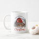 Retro Farmhouse Vibes: Ett kaffe mugg med en mysigt scen av en röd lada under jul kan framkalla nostalgiska känslor av enklare tider. Retro farmor tillför en charmerande beröring till morgonrutinen och skapar en varm och inbjudande atmosfär. Det är ett perfekt sätt att börja din dag med en dos helgdag och rustik charm.