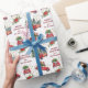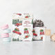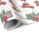 Den här festfiguren i Helgdag innehåller bilder av retroröda bilar och lastbilar som bär nyskuren Julgranar och lätt inslagna presenter i paket. En poinsettia bouquet och en spray med guld-stjärnor ger extra gnistra till designen. Din anpassningsbar står i rött mellan bilder. Roligt för alla åldrar, med lite nostalgi.