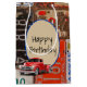 Den gamla rostiga registreringsskyltsamlingen med rött lastbil för födelsedagstext kan redigeras.