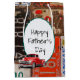 Gammal rostig registreringsskylt med röd återtro lastbil för Fars dag. Text kan redigeras.