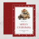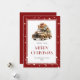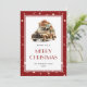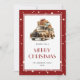 Cute Red God jul-kort med en lastbil, fallande snö och stjärnor. Anpassa enkelt det här helgdag-kortet med din familj namn och året.