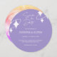 Kärlek på 80-talet? Är du kärlek disco bollar? Inbjudan Retro Colorful Lavender Disco Boll Bröllop spara datum har en färgstark rosa, orange, lila och gult dico boll. Denna chic retror bröllop spara datum är perfekt för en roligt och funky som reflekteras bröllop.