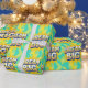 Bold inspirational quote retro bubble lettering bright yellow and blue colors.