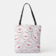 Carry your essentials in style with this retro-inspired tote. Featuring bold line-art lips and hearts, this "kiss print" bag is a fun fashion statement for Galentine's Day, shopping trips, or carrying your laptop.