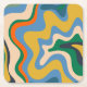 Retro Liquid Swirl Abstrakt Mönster Blue Mustard Underlägg Papper Kvadrat