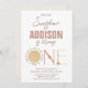 Retro-stil solsken tema första födelsedagsinbjudan för en liten flicka med ordet ett som inkluderar en sol med olika färgade solstrålar. Denna sol- eller solskenstema inbjudan till första födelsedagen är idealisk för en flickas retro-tema första födelsedag.