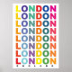 Retro London England poster med färgstark text.