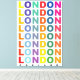 Retro London England poster med färgstark text.
