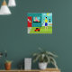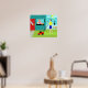 Välkommen till Suburbia! Den här Retro lördagsförmiddagen Poster ett attraktivt par av minimalistisk tecknad i deras lilla paradishörn. Från fönstret med en turkos och tealtegel, kan vi träffa fru Homemaker. Det vackra rödhåriget bär en shock rosa frock. Hon håller en klämmare med nyklämd citonad i ena handen. På fönsterbänken framför henne finns det en rörande hett, homemad, lattice-toppad, frukt paj i en grönt paj-platta. På gångvägen, framför den röda dörren till hemmet, väntar den upprullade lördagsmorgonen på att läsas. Kammaren står på den lush grönt gräsmatta. Han bär en blå kort och en gult skjorta som matchar hans frus soliga disposition. Han står bakom en lagbrytare. Vi kan se att han redan har rört en bit gräs, men i det här läget är det svårt att se om han arbetar hårt eller knappt arbetar. Det verkar som om muddringen är stillastående medan han har ett tangiskt lemonadglas. Uppfriskande! Förutom huset är familjens kattdjur genomträngt på en vit betesstaket. Snowball, den ironiskt namngivna svarta katten, är tittar på hennes lojala subjekt och orangen och gula blommor som gräns ligger i stängslet. Gulten sol håller på att söka efter ljusblå moln bakom fluffy. Himlar är den akvarieskugga som är reserverad för Hometown, USA i kitschy, moderna konst i mitten av århundradet.