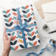 En fantastisk formgivning i löv för att passa ett modernt tema i mitten av århundradet. Mjuka röda och blå utgör det mesta av färg i denna slående utformning. En mycket söt utformning för papper förpackning.