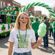 Get your green on with this groovy and retro St. Patrick's Day t-shirt! The design features the word "LUCKY" repeated three times in a funky, wavy, green typography that fades from dark to light green. Behind the text is a green and white checkered pattern with a cool smiley face in the center, whose eyes are made of shamrocks. This comfortable white tee is perfect for pub crawls, parades, parties, or just showing off your Irish pride in style. It's a fun and trendy way to celebrate the luck of the Irish!