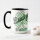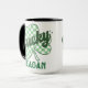Det här roligt kaffet mugg har en grönt och vit schamprock med texten "Lucky" i ett hårt grönt med en matchande namn i en nödlidande grönt med en personlig i monogram.