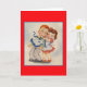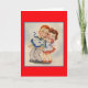 Vintage-/returanteckningskort. En underlig ung kvinna som försöker sätta en apron på en förvånad ung man! Perfekt för alla tillfälle!
