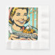 Retro pop art tecknad bok stil mamma som håller en platta pumpfrön efter att ha druckit pumpor på Halloween. Pappra blöjor för ett Halloween fest.