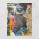 Retro man som arbetar Mixed media collage Vykort