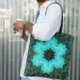 Retro Mandala Flower Blue och Grönt Tygkasse