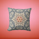 Retro Mandala Flower Tan Blue och Orange Kudde