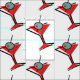 Ett abstrakt retro martini exponeringsglas med oliv i rött och grönt med svart skisserar