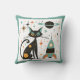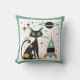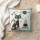Retro MCM Black Cat Spaceship Planet Stars Kudde