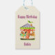 En märkre av presenter från Retro Grattis på födelsedagen för barn med en namn-mall och med en vintage som illustrerar en Merry-resa runt Carousel.