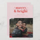 Det här söta retro-kortet är perfekt för familjer att önska sina vänner och sin familj ett God jul. Det här kortet har ord "merry and bright" i ett starkt rött reflexteckensnitt på rosa. Lägg till ditt eget anpassningsbar-meddelande och din familj namn. Du kan också lägga till extra på kortets baksida. Din familj kommer att kärlek i lycklig-julkortet!
