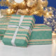Retro Mesh Rand i Turquise och Olive på Beige Presentpapper