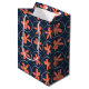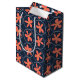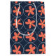 Wrap your gifts in style with this vibrant retro-inspired gift bag. Featuring a playful peach-coral floral motif set within crisp white circles on a deep navy blue background, this bag brings a touch of 1960s charm to any celebration. Durable and high-quality, it’s the perfect choice for birthdays, weddings, or hostess gifts. Make your present stand out before it’s even opened!