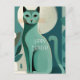 Fira en kattälskares födelsedag med stil med detta retro mid century katt vykort! Designen har ett elegant grönt tryck av en katt i mid century abstrakt stil och fet, anpassningsbar text som läser "Grattis på födelsedagen!" Detta vykort är perfekt för att skicka en rolig och unik födelsedags hälsning till din favorit katt-älskande vän eller familjemedlem.