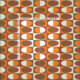 Denna atomtidsininspirerade abstrakt art mönster har ovaler inuti rektanglar i olika orangar och bruna.