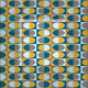 Denna atomtidsininspirerade abstrakt art mönster har ovaler inuti rektanglar i olika skuggor av blått och gult-orange.