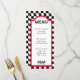 Menyn för mottagande av middag på Retro-bröllopet Checkerboard-bakgrund med rött, svart och vitt färg-schema. Underbar för en vintage på 1950-talet.
