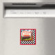 Fyrkantig spara-till-datum-magnet med en middag på 50 sekunder, röd middag och en 50-sekundersserver i vintage på ett svart och vitt kontrollbord. Anpassa till datumet för party. Se matchande "50s Retro-Middag" och "50s Retro Middag Blank Sign"-inbjudningar, "50s Retro Middag-kort", kuvert, favoritpåsar, favoritrutor, favorittaggar, etiketter och klistermärken. Se hela femtiotalets Magnet-samling i SPECIELLA TUUCHES | Avsnittet Party favors.