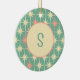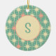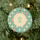 Retro Midsekel Star Mönster Rosa Teal w/ Initial Julgransprydnad Keramik