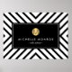 Retro Mod Black and White Pattern Gold Monogram Poster