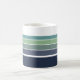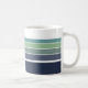 Roligt retro/mod marin blått, teal och grönt stripe mugg är ett roligt sätt att njuta av kaffe, te eller annan dryck på 70- och 80-talen i mod stil. Det är ett lysande och lugnande popo från färg som blandas väl med många designade stilar.