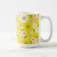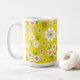 Ljusstark och solig mönster har vita blommor med rosa och grönt centrerat på gultens bakgrund.