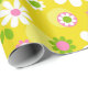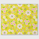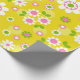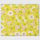 Ljusstark och solig mönster har vita blommor med rosa och grönt centrerat på gultens bakgrund.