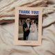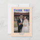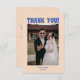 Retro Modern Blue & Beige Bröllop Photo - tackkort. Anpassa med brud och brudgumm namn, din bröllop-dejt och ett foto från bröllop som du väljer på framsidan, och lägg till ditt tack för ditt budskap till familj, vänner och gäster på baksidan.
