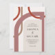 En modern centrifugering på en glamorös konsthugga eller dagar borta av, denna färgstarka bröllopsinbjudan har geometriska kurvformade former som är sammanflätade kring inbjudningens textlayout. Färg innehåller neutralter av terracotta, rost och solbränna med en neutralt elfenbensbeige form som ger texten en ram. Resultaten är unika och konstnärliga och ger en ny dragningskraft.