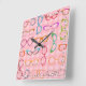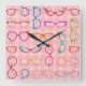Denna färgrika nerdy monokelnoveltydesign kvadrerar väggen tar tid på har ett original- mönster som göras upp av anblickar i en variation av, skuggar och stilar, alla på en bakgrund av retro rosa gingham. Coolan, exponeringsglas ramar spänner flickaktigt från 50-tal, och den rimmed den 60-talkattögat/hornen och browlinen formar för att runda, kvadrerar och allt i-mellan. Detta roliga mönster har en stilfull vintagemodelook, perfekten för någon hipster, nerden eller fläkten av ljus modern stil. Vit pricker markerar tiden.