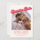 Denna moderna rosa och röda "save the date" har en djärv, retroinspirerad rubrik i kombination med ett stort foto på framsidan för en iögonfallande första intryck. Ren typografi och varma toner håller layouten kännbar, rolig, polerad och lätt att läsa. Ett andra foto visas på baksidan, vilket ger par lite extra utrymme för att dela med sig av en annan favoritminnesstund samtidigt som den övergripande designen hålls enkel och balanserad. Perfekt för par som vill ha en fotoframåt "save the date" som känns personlig, modern och minnesvärd.
